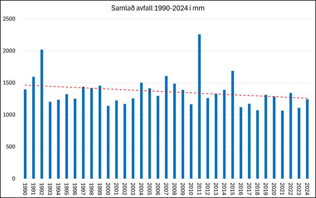 Minsta miðalavfall: 62,1 mm í juni mánað.
