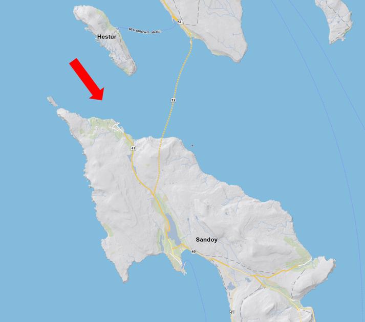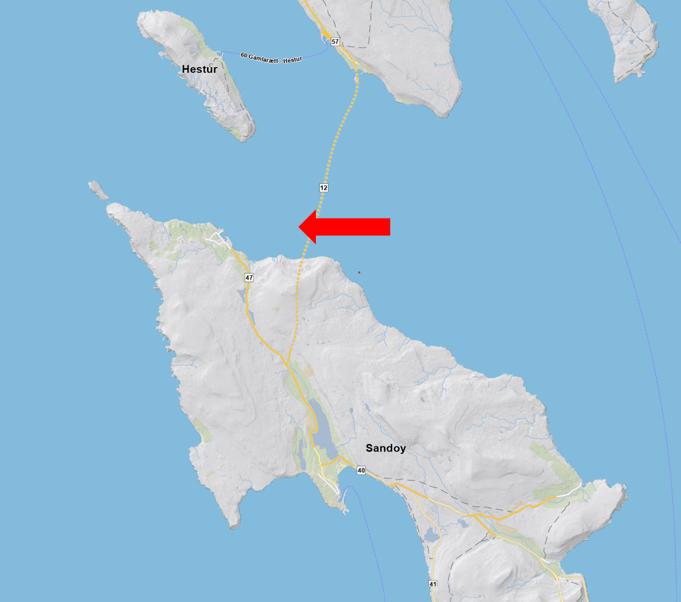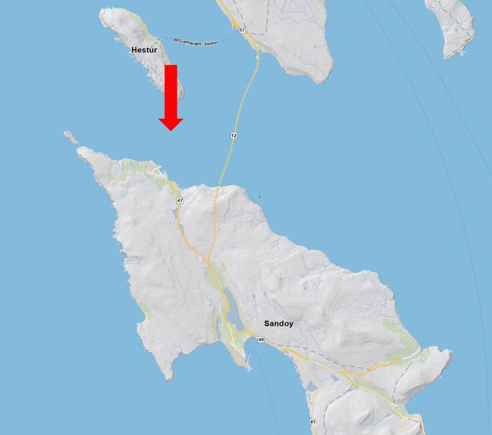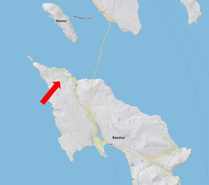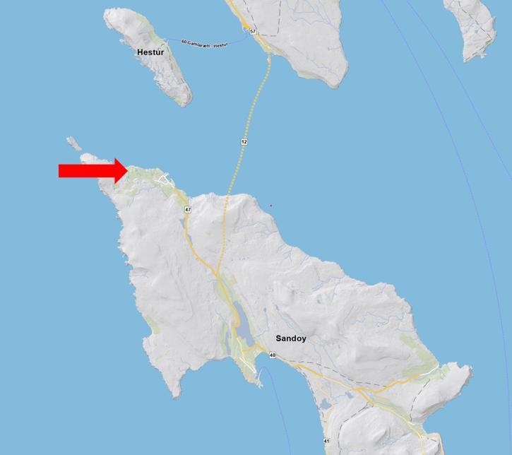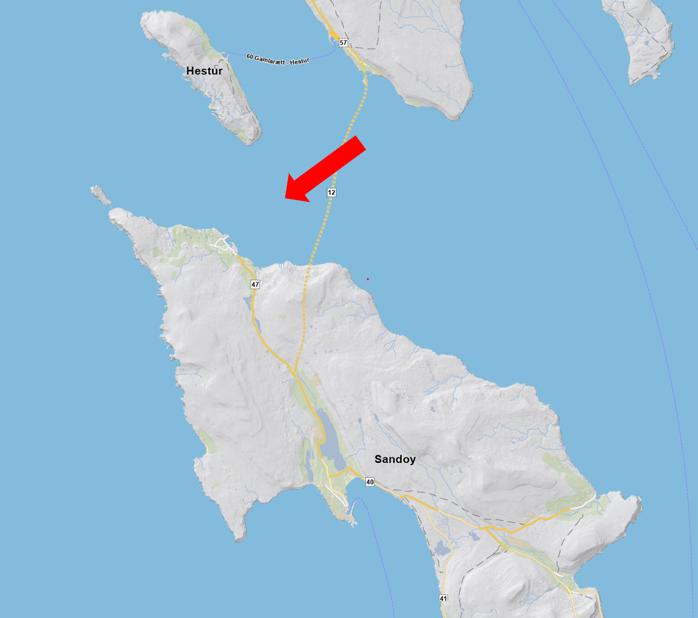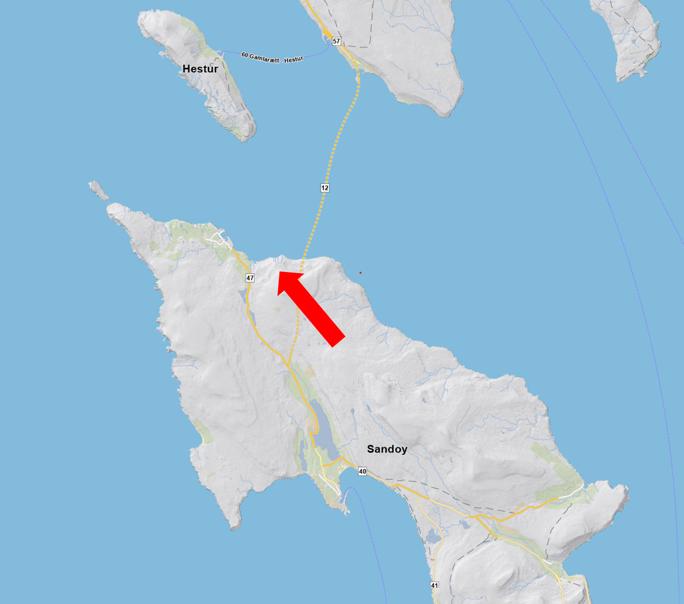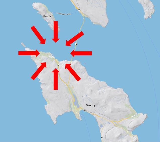 Mynd 2: Kort av Sandoynni. Pílarnir peika ímóti Dali.