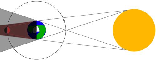 Ljósið ið er eftir, reyð ljósið, verður bent um Jørðina og inn í skuggan á Jørðini, og rakar har Mánan. Tá nú bert bent reytt ljós rakar Mánan sær hann reyður út, og vit hava blóðmánan. Í veruleikanum verður mánin eisini upplýstur av benda reyða ljósinum áðrenn mánamyrkingin gerst full, men tað reyða ljósð sæst ikki fyri tí nógv bjartara hvíta ljósinum frá Sólini.
