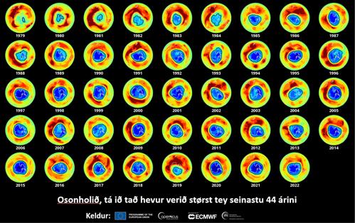 Síðan miðskeiðis í 1980unum hevur nógv verið tosað um osonlagið. Granskarar høvdu mált innihaldið av osoni yvir Suðurpólinum í nógv ár. Serliga hvussu nógv ella lítið tað var um várið, tá ið tað er minst til av tí. Teir sóu eina tíðiliga minking av osoni og fóru at tosa um eitt hol í osonlagnum, og holið tyktist at veksa við nógvari ferð.