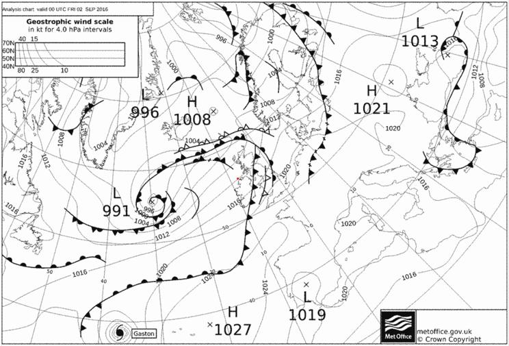 Hóskvøldið 1. september 2016 var eitt hátrýst sunnan fyri Føroyar – sí mynd niðanfyri: