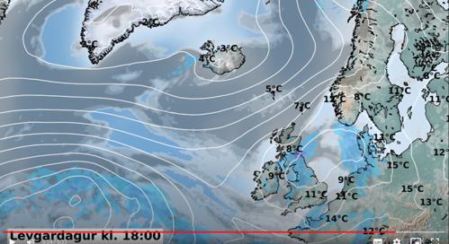 Leygarkvøldið fer hátrýstið at liggja við Eysturgrønland, meðan køld luft fer at streyma ímóti Føroyum av útnyrðingi.