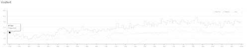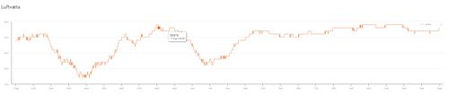 Vætuinnihaldið fór niður 80 % um 4 tíðina hendan morgunin. Eftir tað lá hon ímillum 82% og 90%